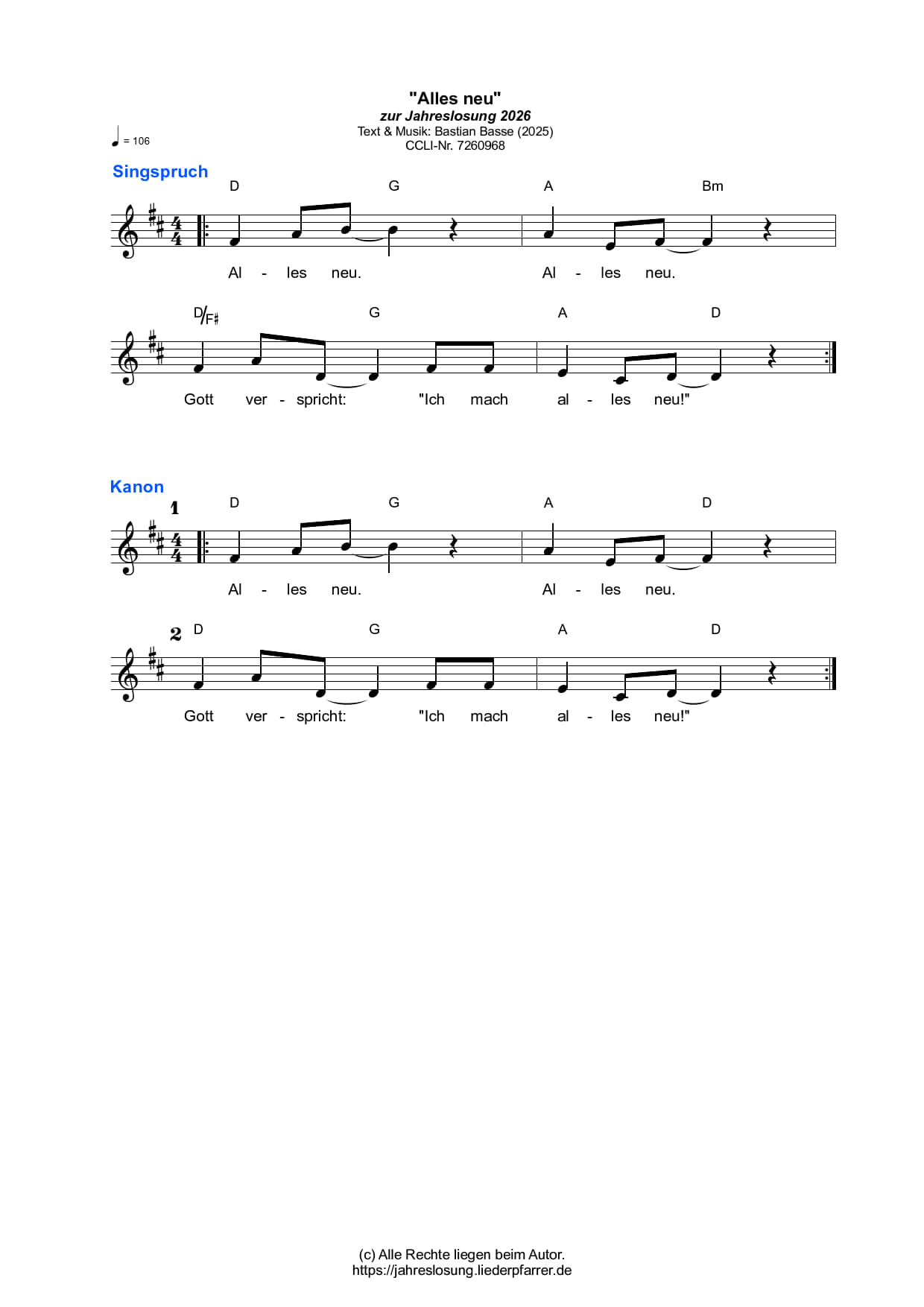 Alles neu. Lied zur Jahreslosung